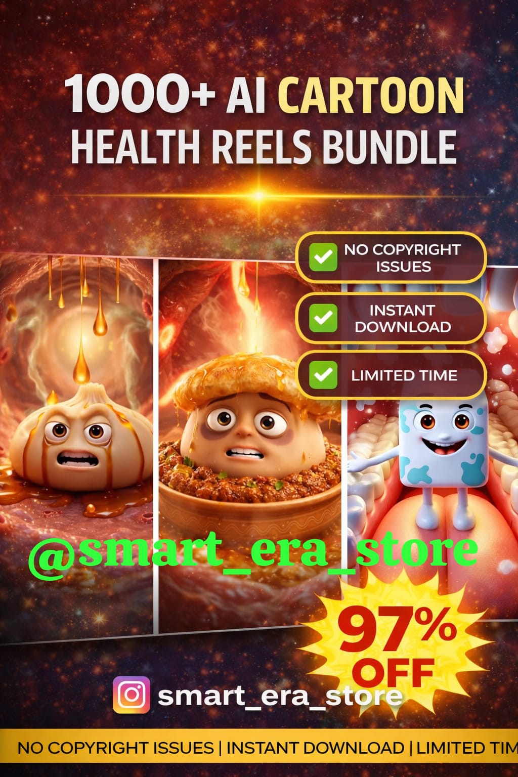 AI Food Cartoon Reels Bundle ek creative aur super-viral content collection hai jisme 1000+ AI-generated food cartoon reels shamil hain. Is bundle me animated food characters, funny expressions, cute food animations aur eye-catching cartoon-style clips milte hain jo instantly audience ka attention grab karte hain 😍🔥