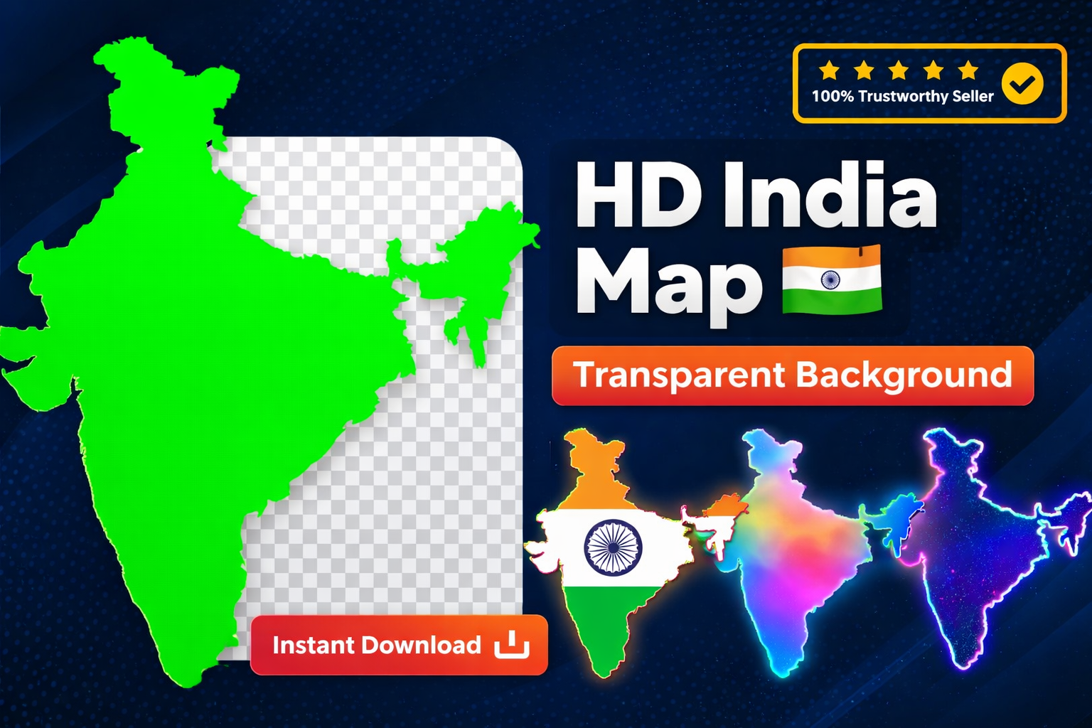 👉 🇮🇳 HD India Map PNG (Transparent Background) | Editable Graphic for Reels & Videos