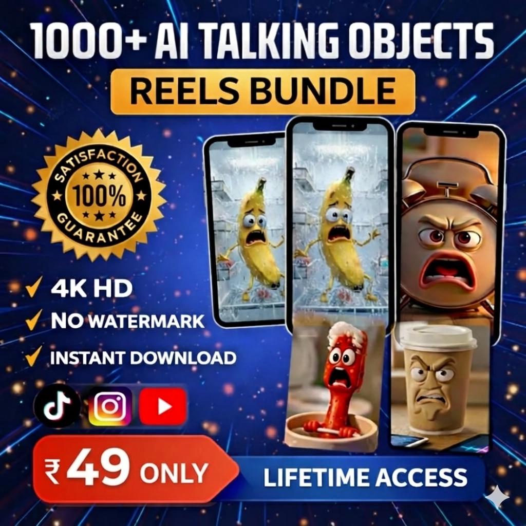 Boost your social media growth with our premium AI Talking Objects Reels Bundle. This powerful bundle includes 1000+ high-quality, ready-to-post reels designed to capture attention and increase engagement instantly. Each reel features creative AI-generated talking objects that are entertaining, unique, and highly engaging for today’s audience.