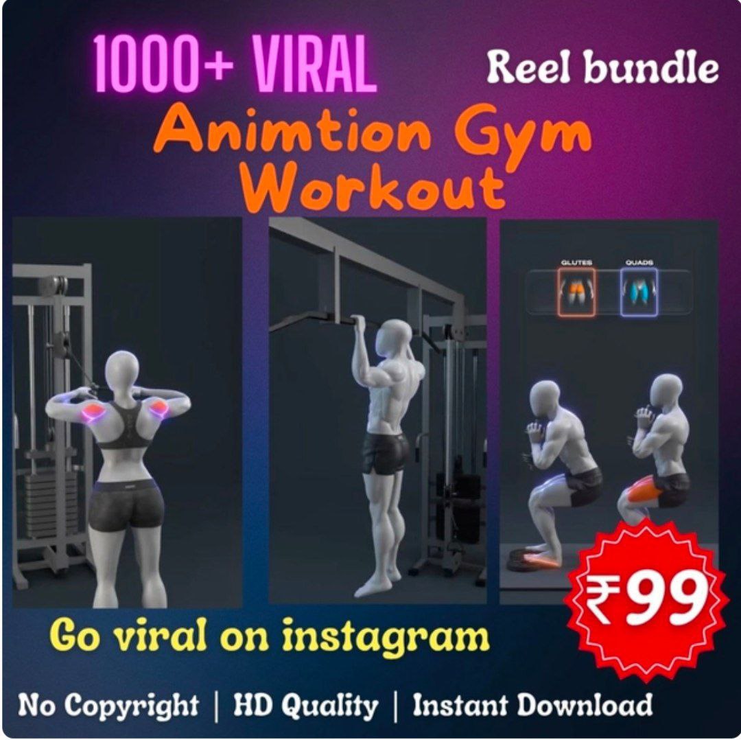 This bundle gives you access to 1000+ animation gym workout reels perfect for Instagram Reels, YouTube Shorts and Facebook Reels.