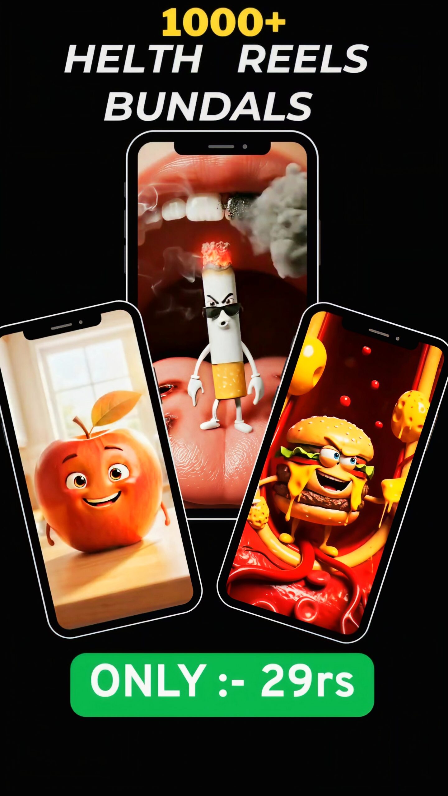Whether you’re a health coach, fitness creator, nutrition brand, or digital marketer, this bundle gives you ready-made, attention-grabbing reels that save you hours of editing while keeping your audience hooked.