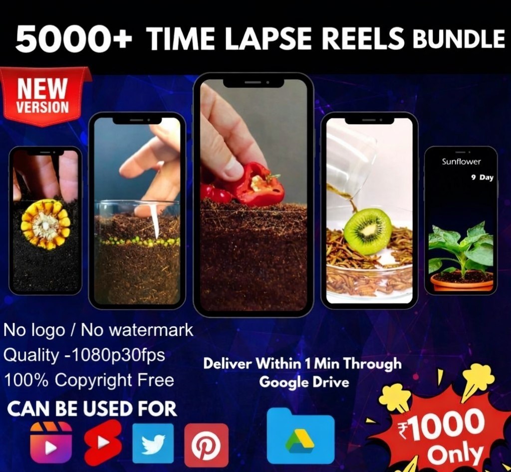 Headline: ELEVATE YOUR AESTHETIC IN ONE CLICK ✨ The secret to high-retention Reels? Visual Variety. This bundle provides 5000+ premium time-lapse clips designed to keep your viewers’ eyes glued to the screen. Perfect for background visuals behind quotes, podcasts, or music.