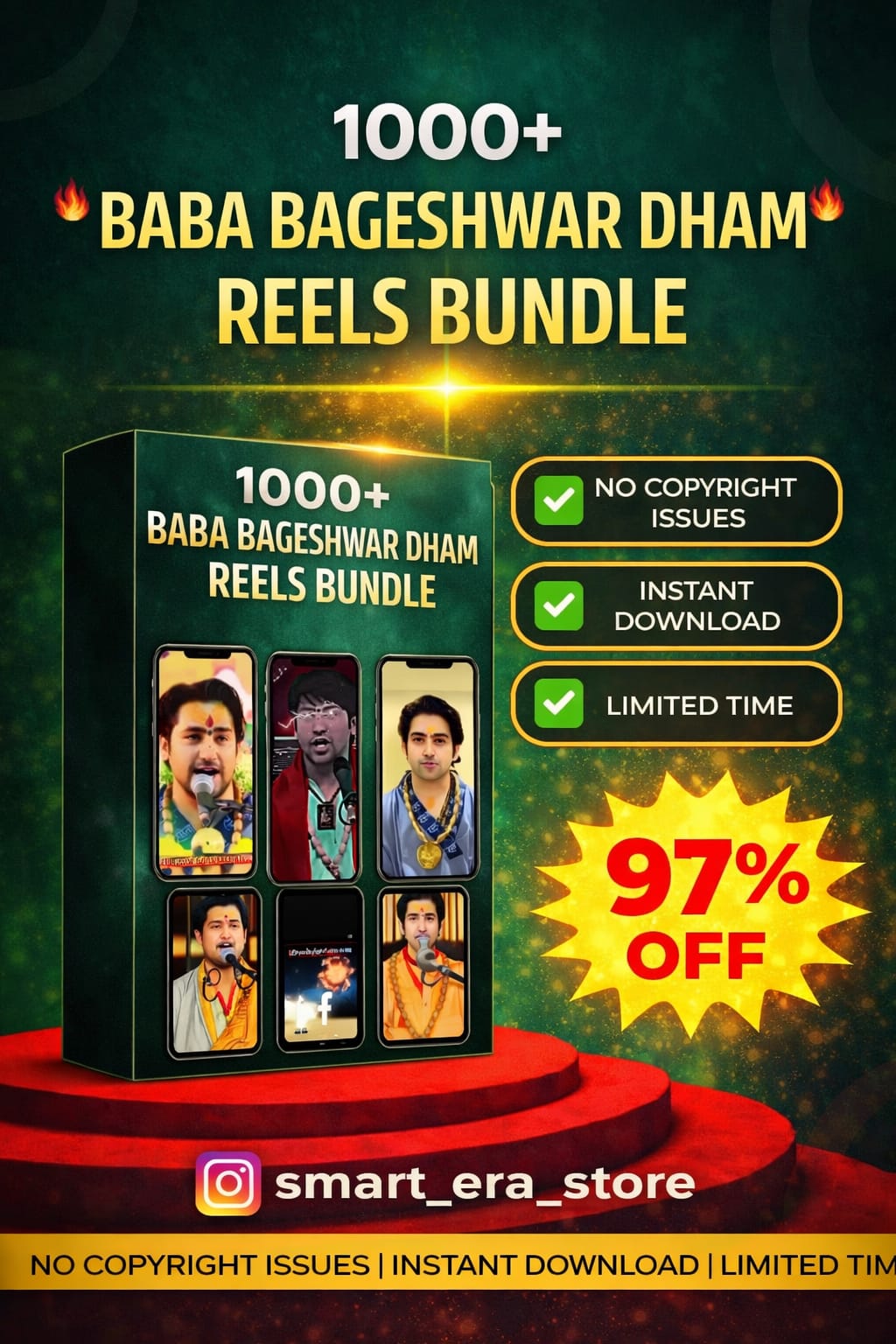 Is bundle me short devotional reels hain jo Instagram Reels, YouTube Shorts aur Facebook Reels ke liye perfect hain. Bhakti aur spiritual content ka audience loyal hota hai aur is type ke reels par high watch time, shares aur engagement milta hai.